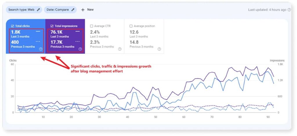 For instance, we observed a significant increase in organic traffic to our client’s website after publishing a blog post that ranked in the top 3.
