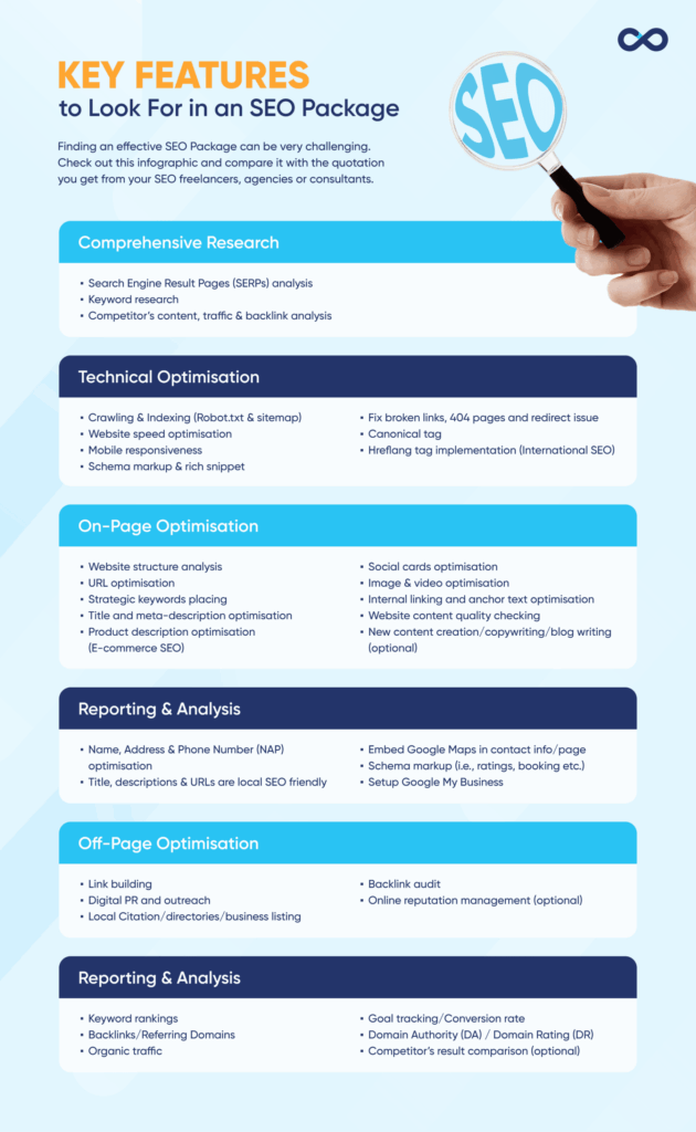 So what should that framework actually include? Here’s a general benchmark of what a good SEO package covers.