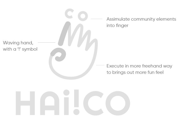 For a playful touch, we intentionally kept the letter “i” in “HAI” in lowercase, forming an inverted motif with the exclamation mark. The unique motif, “i!”, then became a distinctive visual element of HAi!CO.